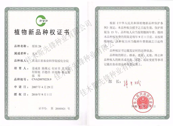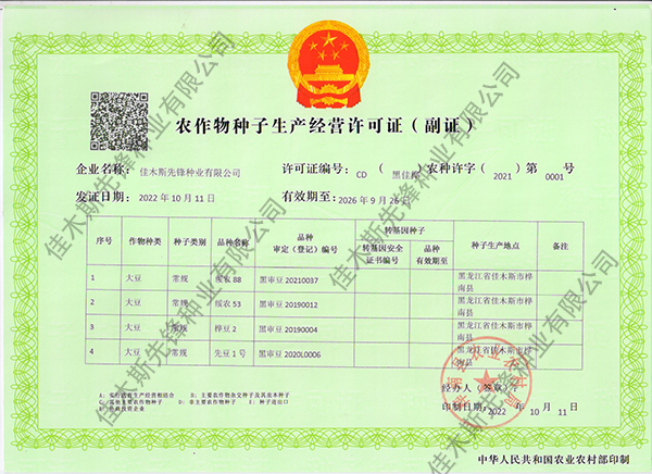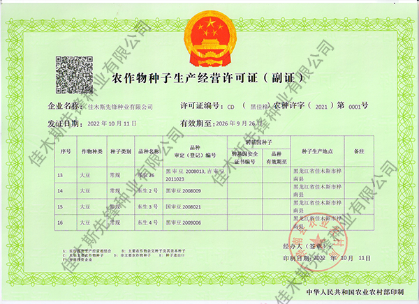 走進我們 COME INTO US 您現(xiàn)在的位置:網(wǎng)站首頁 > 走進我們 >資質榮譽 公司簡介 企業(yè)文化 領導致辭 資質榮譽 農作物種子生產經(jīng)營許可證(副證) 農作物種子生產經(jīng)營許可證(副證) 農作物種子生產經(jīng)營許可證(副證) 黑農48省農作物品種合格證書 黑農48植物新品種權證書 綏農26植物新品種權證書 共32條記錄 當前為第2頁/共6頁上一頁1234...6下一頁